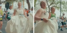 | ഭര്ത്താവിനോടുള്ള ആദരസൂചകമായി വിവാഹവസ്ത്രത്തിലോടി യുകെ യുവതി |