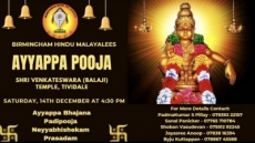 ബര്മിംങ്ഹാം ഹിന്ദു മലയാളി അസോസിയേഷന്റെ(BHIMA)ഈ വര്ഷത്തെ മണ്ഡലകാല അയ്യപ്പപൂജ പരിപാവനമായ ബര്മിംങ്ഹാം ബാലാജി ക്ഷേത്രസന്നിധിയില് 14-12-2024 ശനിയാഴ്ച നടത്തുവാന് തീരുമാനിച്ചിരിക്കുന്നു.