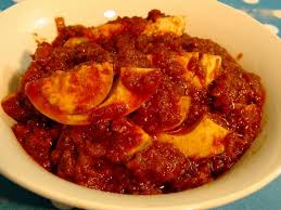 ചീനച്ചട്ടിയില് എണ്ണ ചൂടാക്കി അതിലേക്കു ചെറുതായി അറിഞ്ഞു വച്ചിരിക്കുന്ന സവാള ചേര്ത്ത് അതിലേക്കു പച്ച മുളകും ഇഞ്ചിയും കറിവേപ്പിലയും ചേര്ക്കുക . ഇതെല്ലാം വാടുമ്പോള് തക്കാളി അറിഞ്ഞു വച്ചിരിക്കുന്നത് ചേര്ക്കുക .തക്കാളി വെന്തു തുടങ്ങുമ്പോള് വേവിച്ച ഉരുളക്കുഴങ്ങും മുട്ട നെടുകെ മുറിച്ചതും ചേര്ത്ത് ഇളക്കുക. നന്നായി മിക്സ് ആയശേഷം അരച്ചു വച്ചിരിക്കുന്ന തേങ്ങ മിശ്രിതം ചേര്ക്കുക. വേണമെങ്കില് കുറച്ചു കൂടി വെള്ളം പാകം അനുസരിച്ചു ചേര്ക്കാവുന്നതാണ്.