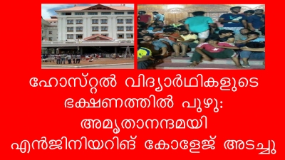 ഭക്ഷണത്തില് നിന്നും പുഴുവിനെ കണ്ടെത്തിയതിനെ തുടര്ന്ന് മാതാ അമൃതാനന്ദമയീ മഠത്തിന് കീഴിലുള്ള അമൃതാ എഞ്ചിനിയറിങ് കോളജ് അനിശ്ചിതകാലത്തേക്ക് അടച്ചു. കരുനാഗപ്പള്ളി അമൃതപുരി കാമ്പസിലെ എഞ്ചിനിയറിംഗ് കോളേജാണ് അടച്ചു പൂട്ടിയത്. കഴിഞ്ഞ ദിവസം ഹോസ്റ്റല് വിദ്യാര്ഥികള്ക്ക് നല്കിയ ഭക്ഷണത്തിലാണ് പുഴുവിനെ കണ്ടെത്തിയത്. ഇതേ തുടര്ന്ന് കോളജ് ക്യാമ്പസ് വിദ്യാര്ഥികള് ഉപരോധിച്ചിരുന്നു. വിദ്യാര്ഥികള് പ്രതിഷേധം അറിയിച്ചെങ്കിലും ഇത് അംഗീകരിക്കാന് കോളജ് മനേജ്മെന്റ് തയാറായിട്ടില്ല.