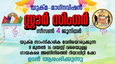 യുക്മ സാംസ്ക്കാരിക വേദിയുടെ ആഭിമുഖ്യത്തില് യുക്മയും മാഗ്നാവിഷന് TV യും ചേര്ന്നു സംഘടിപ്പിക്കുന്ന യുക്മ - മാഗ്നവിഷന് സ്റ്റാര് സിംഗര് സീസണ് 4 ജൂണിയര് റിയാലിറ്റി ഷോയുടെ ലോഗോ പ്രകാശനം നവംബര് രണ്ടിന് 10-ാ മത് യുക്മ ദേശീയ കലാമേള നടന്ന ശ്രീദേവീ നഗറില് വെച്ചു നടത്തപ്പെട്ടു. ദേശീയ കലാമേളയുടെ പ്രധാന വേദിയില് പ്രൌഢ ഗംഭീരമായ സദസ്സിനെ സാക്ഷി നിര്ത്തി യുക്മ ദേശീയ പ്രസിഡന്റ് മനോജ് കുമാര് പിള്ള ലോഗോ പ്രകാശനം ചെയ്തു. യുക്മ നാഷണല് പി ആര് ഒ യും, സ്റ്റാര്സിംഗര് സീസണ് 2, സീസണ് 3 എന്നിവയുടെ ചീഫ് പ്രോഗ്രാം കോര്ഡിനേറ്ററുമായിരുന്ന സജീഷ് ടോം ആമുഖ പ്രഭാഷണം നടത്തി. ചടങ്ങില് സ്റ്റാര് സിംഗര് സീസണ് 4 ജൂണിയറിന്റെ ചീഫ് പ്രോഗ്രാം കോര്ഡിനേറ്റര് സെബാസ്റ്റ്യന് മുതുപാറക്കുന്നേല്, മാഗ്നാവിഷന് TV മാനേജിംഗ് ഡയറക്ടര് ഡീക്കണ് ജോയിസ് പള്ളിക്കമ്യാലില് എന്നിവര് സ്റ്റാര് സിംഗര് സീസണ് 4 നെക്കുറിച്ചു സംസാരിച്ചു. കഴിഞ്ഞ വര്ഷങ്ങളില് നിന്നും വ്യത്യസ്തമായി 8 വയസ്സിനും 16 വയസ്സിനും ഇടയില് പ്രായമുള്ള കൊച്ചു ഗായകരാണ് സീസണ് 4 ല് ആവേശമുണര്ത്താന് എത്തുന്നത്. മത്സരാര്ത്ഥികള്ക്കും പ്രേക്ഷകര്ക്കും കൂടുതല് രസകരവും ആസ്വാദ്യകരവുമായ രീതിയിലായിരിക്കും സീസണ് 4 വിഭാവനം ചെയ്തിരിക്കുന്നത്.