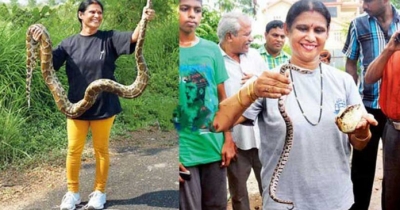 പാമ്പിനെ പിടികൂടണമെന്ന് അഭ്യര്ത്ഥിച്ച് കൊച്ചി നഗരത്തില് നിന്ന് ആര് വിളിച്ചാലും രാത്രിയെന്നോ പകലെന്നോ വ്യത്യാസമില്ലാതെ തന്റെ ഭര്ത്താവിന്റെ കൂടെ പറന്നെത്തും ഈ വീട്ടമ്മ. |