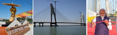 രാജ്യത്തെ ഏറ്റവും നീളംകൂടിയ കേബിള് സ്റ്റേഡ് 'സുദര്ശന് സേതു' പ്രധാനമന്ത്രി നരേന്ദ്രമോദി ദ്വാരകയില് ഉദ്ഘാടനം ചെയ്തു. ഓഖ പ്രദേശത്തെ ദ്വാരകയുമായി ബന്ധിപ്പിക്കുന്ന പാലം ഏകദേശം 980 കോടി രൂപ ചെലവിലാണ് നിര്മ്മിച്ചിരിക്കുന്നത്.