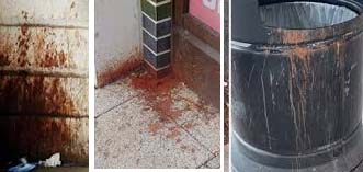 ഈ കറകള് കൂടുതല് സാധാരണമായിരിക്കുന്നു എന്നാണ് - പ്രത്യേകിച്ച് ഗുട്ട്കയും ചവയ്ക്കുന്ന പുകയില ഉല്പ്പന്നങ്ങളും വില്ക്കുന്ന പുറത്തെ കടകളിലും ടേക്ക്അവേ റെസ്റ്റോറന്റുകളിലും. |