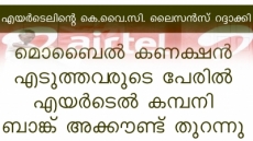 ഉപഭോക്താക്കള് അറിയാതെ അവരുടെ പേരില് പെയ്മെന്റ് ബാങ്ക് അക്കൗണ്ട് തുടങ്ങിയ എയര്ടെല്ലിന് തിരിച്ചടി. ഭാരതി എയര്ടെല്ലിന് കീഴിലുള്ള എയര്ടെല് പേമെന്റ് ബാങ്കിന്റെ കെ.വൈ.സി. ലൈസന്സ് യുഐഡിഐ താല്ക്കാലികമായി റദ്ദാക്കി.