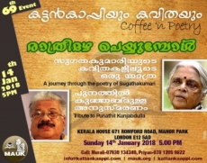 യു. കെ യിലെ പ്രമുഖ മലയാളി സാംസ്കാരിക സംഘടനയായ ശ്രുതിയുടെ ഈ വര്ഷത്തെ കലാവിരുന്നിന് യോര്ക്ക്ഷയറിലെ പോണ്ടിഫ്രാക്ടില് അരങ്ങൊരുങ്ങുന്നു. പ്രമുഖ മലയാള സിനിമാ സംവിധായകനായ ഷാജി എന് കരുണ് ആണ് മുഖ്യാതിഥി. ഓട്ടന് തുള്ളല് കലാകാരനായ കലാമണ്ഡലം ഗീതാനന്ദന് ഓട്ടന് തുള്ളല് അവതരിപ്പിക്കുന്നു. യു. കെ യുടെ വിവിധ |