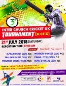 മൂന്നാമത് ഇന്റര് ചര്ച്ച് ക്രിക്കറ്റ് ടൂര്ണമെന്റ് (ICCUK) ജൂലൈ 21 ശനിയാഴ്ച്ച നടക്കും. 6 ടീമുകള് പങ്കെടുക്കുന്ന ഈ ടൂര്ണമെന്റില് രാവിലെ 7നു എല്ലാ ടീം അംഗങ്ങളും റിപ്പോര്ട്ട് ചെയ്യെണ്ടതാണ്. ലെസ്റ്റെറില് ലോബൊറോ എന്ന സ്ഥലത്തു രണ്ടു ഫീല്ഡികളിലായ് മത്സരങ്ങള് നടക്കും. തൂലിക ടിവി , സമര് ടിവി, ഐസിപിഎഫ് യുകെ, |