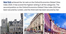 ഓക്സ്ഫോര്ഡ് ഇന്ഡക്സ് പ്രകാരം ലോകത്തെ ഏറ്റവും മികച്ച നഗരം ന്യൂയോര്ക്ക്. രണ്ടാമത് ലണ്ടന്, പിന്നാലെ സാന് ജോസ്, ടോക്കിയോ എന്നീ നഗരങ്ങളുമുണ്ട്. സാമ്പത്തികം, മാനവ വിഭവം, ജീവിതനിലവാരം, പരിസ്ഥിതി, ഭരണനിര്വഹണം എന്നീ അഞ്ച് വിഭാഗങ്ങളെ അടിസ്ഥാനമാക്കി ലോകനഗരങ്ങളെ റാങ്ക് ചെയ്യുന്നതാണ് ഓക്സ്ഫോര്ഡ് ഇക്കണോമിക്സ് ഗ്ലോബല് സിറ്റീസ് ഇന്ഡക്സ്.
