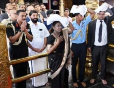 കറുപ്പ് വസ്ത്രം ധരിച്ച് കെട്ടേന്തിയ രാഷ്ട്രപതിക്കൊപ്പം മൂന്നു സുരക്ഷാ ഉദ്യോഗസ്ഥരും കെട്ട് നിറച്ചു. തുടര്ന്ന് സന്നിധാനത്തേക്ക് ഫോഴ്സ് ഗുര്ഖാ ഫോര് വീല് ഡ്രൈവ് എമര്ജന്സി വാഹനത്തിലാണ് രാഷ്ട്രപതി എത്തിയത്. ഒരു മണിക്കൂറിലേറെ സമയം രാഷ്ട്രപതി സന്നിധാനത്ത് ചിലവഴിച്ചു. |