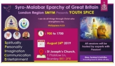 ഗ്രേറ്റ് ബ്രിട്ടന് രൂപതയിലെ സിറോ മലബാര് യൂത്ത് മൂവ്മെന്റ് ലണ്ടന് റീജിയന്റെ ആഭിമുഖ്യത്തില് ഓഗസ്റ്റ് ഇരുപത്തിനാലാം തീയതി യുവജനങ്ങള്ക്കായി പ്രഥമ യൂത്ത് കണ്വെന്ഷന് സംഘടിപ്പിക്കുന്നു. ലണ്ടന് റീജിയന് കോഡിനേറ്റര് ഫാ സെബാസ്റ്റ്യന് ചാമക്കാല, ഫാ ഹാന്സ് പുതിയാകുളങ്ങര, ഫാ ജോസഫ് അന്തിയാംകുളം , ഫാ