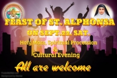 ഭാരതത്തിന്റെ പ്രഥമ വിശുദ്ധയും കേരളത്തിന്റെ സഹന പുഷ്പവുമായ വി. അല്ഫോന്സാമ്മയുടെ തിരുനാള് സന്ദര്ലാന്ഡ് സെ. ജോസെഫ്സ് ദേവാലയത്തില് വെച്ച് സെപ്റ്റംബര് 22 ശനിയാഴ്ച ഭക്തിനിര്ഭരമായ പരിപാടികളോടെ തുടക്കമാകുന്നു . രാവിലെ 10 നു തുടങ്ങുന്ന ആഘോഷമായ ദിവ്യബലിയില് രൂപതയിലെ പ്രമുഖരായ വൈദീകര് നേതൃത്വം നല്കും.