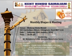 കെന്റ് ഹിന്ദുസമാജത്തിന്റെ ഈ മാസത്തെ കുടുംബസംഗമവും ഭജനയും മനോജ് കുമാറിന്റെയും (Gillingham) കുടുംബത്തിന്റെയും നേതൃത്വത്തില് മെഡ്വേ ഹിന്ദു മന്ദിറില് വച്ച്, ജനുവരി 20 ശനിയാഴ്ച നടക്കുന്നു.