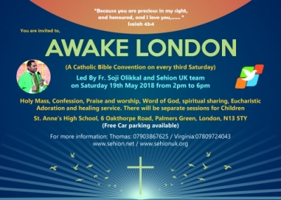 പന്തക്കുസ്ത തിരുന്നാളിനോട് അനുബന്ധിച്ച് മൂന്നാം ശനിയാഴ്ച കണ്വെന്ഷന് ലണ്ടനിെ പാമേഴ്സ് ഗ്രില് സെന്റ് ജോണ്സ് ഹൈസ്കൂള് ഓഡിറ്റോറിയത്തില് ശനിയാഴ്ച 2 മണിമുതല് 6 മണിവരെ ഫാ സോജി ഓലിക്കലിന്റെ നേതൃത്വത്തില് സെഹിയോന് യുകെ ടീം നയിക്കും. വിവിധ ക്ലാസ് മുറികളില് പ്രായ അടിസ്ഥാനത്തില് കുട്ടികള്ക്കായി ടീന്സ് ഫോര് കിങ്ഡം നയിക്കുന്ന പ്രത്യേക ശുശ്രൂഷയും ഒരുക്കിയിട്ടുണ്ട്.