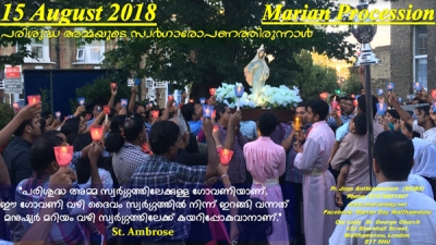 ലണ്ടനിലെ മരിയന് തീര്ഥാടന കേന്ദ്രമായ വാല്താംസ്റ്റോയിലെ ഔവര് ലേഡി ആന്ഡ് സെന്റ് ജോര്ജ് പള്ളിയില് ഈ മാസം 15ാം തീയതി ബുധനാഴ്ച മരിയന് ദിനശുശ്രൂഷയും മരിയന് പ്രദക്ഷിണവും, പരിശുദ്ധ അമ്മയുടെ സ്വര്ഗാരോപണ തിരുനാളും ഭക്ത്യാദരപൂര്വ്വം കൊണ്ടാടുന്നതാണ്.