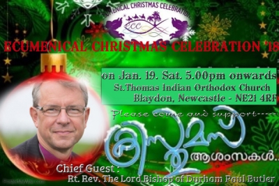 ചടങ്ങില് ആംഗ്ലിക്കന് രൂപതാധ്യക്ഷന് റൈറ്റ് റെവ . ദി ലോര്ഡ് ബിഷപ് ഓഫ് ദര്ഹം പോള് ബട്ട്ലെര് ( ദര്ഹം രൂപത ) മുഖ്യാതിഥിയാകും . ക്രൈസ്തവ വിശ്വാസവും പൈതൃകവും മുറുകെ പിടിച്ചുകൊണ്ടു , തങ്ങള്ക്കു കിട്ടിയ വിശ്വാസ്സദീപത്തെ വരും തലമുറയ്ക്ക് കൈമാറാനും അതനുസരിച്ച് ജീവിക്കാനും വെമ്പുന്ന മലയാളി ക്രൈസ്തവര് , സ്നേഹത്തിന്റെ ക്രിസ്മസ് സന്ദേശം സഹോധരങ്ങള്ക്ക് കൈമാറാനുള്ള എളിയ സംരംഭത്തില് കത്തോലിക്ക , ഓര്ത്തഡോക്സ് , ജാക്കോബൈറ്റ് , മാര്ത്തോമ സഭകളുടെ സാന്നിധ്യം കൊണ്ട് സമ്പന്നമാകും. വിവിധ സഭകളുടെ വൈദീക ശ്രേഷ്ട്ടന്മാരും മറ്റു വിശിഷ്ട അഥിതികളും സാക്ഷ്യം വഹിക്കുന്ന ചടങ്ങില് നോര്ത്ത് ഈസ്റ്റിലെ മലയാളികളുടെ ശൈത്യകാല സമ്മേളനമാകുമെന്ന് പ്രതീക്ഷിക്കുന്നു