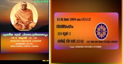 ശബരിമല കര്മ്മ സമതി രക്ഷാധികാരിയും കൊളത്തൂര് അദ്വൈത ആശ്രമം മഠാധിപതിയുമായ സ്വാമി ചിദാനന്ദപുരി 2019സന്ദര്ശനത്തിന്റെ ഭാഗമായി വിപുലമായ പരിപാടികള്ക്കാണ് യു കെ യിലെ വിവിധ നഗരങ്ങള് ഈയാഴ്ച സാക്ഷ്യം വഹിക്കുന്നത് . ജൂണ് 11നു മാഞ്ചസ്റ്ററില് നടത്തിയ സത്സംഗത്തിനു തുടര്ച്ചയായി പ്രിയ ആചാര്യന്റെ പ്രഭാഷണ പരമ്പരകള് യുകെയില് ഇനി 2 വേദികളില് കൂടിയുണ്ടായിരിക്കുന്നതാണ് .ജൂണ് 15 ,16 തീയതികളില് ലെസ്റ്റെറിലെ ബ്യൂമനോര് പാര്ക്കില് വച്ച് തികച്ചും ഗുരുകുല ശൈലിയില് വിഭാവനം ചെയ്തിട്ടുള്ളതും* ആശ്രമ അന്തരീക്ഷത്തില് നടത്തപെടുന്നതുമായ സുദര്ശനം വ്യക്തിത്വ വികസന ശിബിരം എന്നീ പരിപാടികള്ക്കാണ് യു കെ ഹൈന്ദവ സമൂഹം വരും നാളുകളില് സാക്ഷ്യം വഹിക്കുന്നത് .
