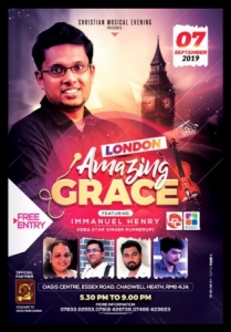 ഐഡിയ സ്റ്റാര് സിങ്ങര് ഫെയിം ഇമ്മാനുവേല് ഹെന്ററി നയിക്കുന്ന സംഗീത സന്ധ്യ ശനിയാഴ്ച വൈകുന്നേരം 5 മണി മുതല് 9 മണി വരെ ചാഡ്വെല് ഹീത്ത് ഒയാസിസ് സെന്ററില് വെച്ചു നടത്തപ്പെടുന്നു. ഇമ്മാനുവേല് ഹെന്ററിയോടൊപ്പം യുകെ ക്രൈസ്തവ മലയാളി സമൂഹത്തിനു സുപരിചതരായ ടിനി ജിജി, ഗിഫ്റ്റി മാത്യു, നിജി അഗസ്റ്റിന് ഉള്പ്പെടുന്ന ഗായകര് ഈ സംഗീത സന്ധ്യ കൂടുതല് മികവുറ്റതാക്കി മാറ്റുന്നു. യുകെയില് നിന്നുള്ള വിവിധ സഭകള്ക്കൊപ്പം ഈസ്റ്റ് ലണ്ടനില് ഉള്ള രെഹോബോത്ത് ചര്ച്ച്, ലണ്ടന് പെന്തക്കോസ്ത് ചര്ച്ച് ഈ സംഗമത്തിന്റെ മുമ്പില് നിന്നു പ്രവര്ത്തിക്കുന്നു. കടന്നു വരുന്നവര്ക്കുള്ള ഫ്രീ പാര്ക്കിംഗ് സൗകര്യങ്ങള് ക്രമീകരിച്ചിട്ടുണ്ട്.