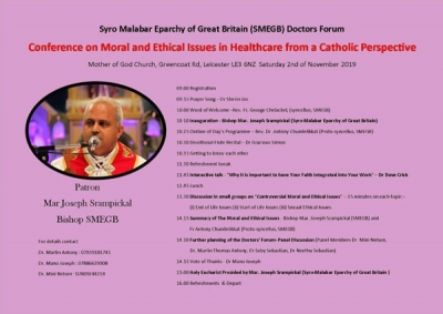 ഗ്രേറ്റ് ബ്രിട്ടന് സീറോ മലബാര് രൂപതയുടെ നേതൃത്വത്തില് ആദ്യമായി നടത്തപെടുന്ന ഡോക്ടേഴ്സ് ഫോറത്തെ മോഡിയാക്കാന് രൂപത വികാരി ജനറല്മാരായ ഫാ ആന്റണി ചുണ്ടെലിക്കാട്ടില് , ജോര്ജ് തോമസ് ചേലക്കല് , ഡോക്ടര് മനോ ജോസഫ്, ലെസ്റ്റര് പാരിഷ് കമ്മിറ്റി എന്നിവരുടെ നേതൃത്വത്തില് വിപുലമായ ഒരുക്കങ്ങള് നടത്തിയിരിക്കുന്നു. ആരോഗ്യ രംഗത്തെ ധാര്മികത ഏറെ ചോദ്യം ചെയ്യപ്പെടുന്ന ഈ കാലഘട്ടത്തില് രൂപതയുടെ നേതൃത്വത്തിത്തിലുള്ള ഡോക്ടേഴ്സ് ഫോറത്തിന്റെ തുടക്കവും അനുബന്ധ പരിപാടികളും സഭാത്മക ജീവിതചര്യയില് അടിയുറച്ചു കര്മ പഥത്തില് യേശുവിന്റെ സാക്ഷികളാകുവാന് സഹായിക്കും .