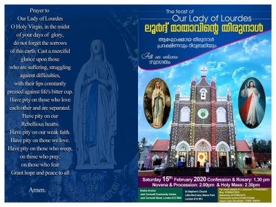 മനോര്‍പാര്‍ക്ക് സെന്റ് സ്റ്റീഫന്‍സ് പള്ളിയില്‍ ലൂര്‍ദ്ദ്മാതാവിന്റെ തിരുനാള്‍ പതിവുപോലെ വിപുലമായ പരിപാടികളോടെ ആഘോഷിക്കുന്നു. ഫെബ്രുവരി 15 ന് ശനിയാഴ്ചയാണ് തിരുനാള്‍. ശനിയാഴ്ച ഉച്ചകഴിഞ്ഞ് ഒന്നരക്ക് കുംബസാരം, തുടര്‍ന്ന് മാതാവിന്റെജപമാല, രണ്ടിന് നൊവേന, തുടര്‍ന്ന് മുത്തുക്കുടകളുടെ അകമ്പടിയോടെ മാതാവിന്റെ തിരുസ്വരൂപം വഹിച്ചുകൊണ്ടുള്ള ഭക്തിപൂര്‍വകമായ പ്രദക്ഷിണം. പ്രദക്ഷിണം പള്ളിയില്‍ എത്തിച്ചേര്‍ന്നാല്‍ ഉടന്‍ തിരുനാള്‍ കുര്‍ബാന ആരംഭിക്കും. രോഗികള്‍ക്ക് വേണ്ടി പ്രത്യേക പ്രാര്‍ത്ഥനയും രോഗശാന്തി ശുശ്രൂഷയും ഉണ്ടായിരിക്കുന്നതാണ്. വിശുദ്ധ കുര്‍ബാനക്ക് ശേഷം ജായ്ക്ക് കോംവോള്‍ കമ്യൂണിറ്റി സെന്ററില്‍ വച്ച് സ്നേഹവിരുന്ന്. ലണ്ടനിലെ കാക്കോട്ടുമൂല ഇടവകയില്‍ നിന്നുള്ള അംഗങ്ങളാണ് തിരുനാള്‍ നടത്തുന്നത്.