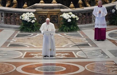 ഈസ്റ്റര് സന്ദേശത്തിലാണ് അദ്ദേഹം ഇക്കാര്യം പറഞ്ഞത്. കൊറോണ ബാധയുടെ പശ്ചാതലത്തില് സെന്റ് മേരീസ് ബസിലിക്കയില് വിശ്വാസസമൂഹം ഇല്ലാതെ മാര്പാപ്പ ഈസ്റ്റര് കുര്ബാന അര്പ്പിച്ചു. സാധാരണ ജനസാഗരം നിറഞ്ഞുനില്ക്കുന്ന സെന്റ് പീറ്റേഴ്സ് സ്ക്വയല് ഇന്നലെ ശൂന്യമായിരുന്നു.