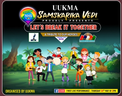 കോവിഡ് - 19 രോഗബാധിതരായവര്ക്കുവേണ്ടി സ്വന്തം ജീവന്പോലും തൃണവല്ഗണിച്ച് കരുതലിന്റെ സ്നേഹസ്പര്ശമായി വിശ്രമരഹിതരായി ജോലി ചെയ്യുന്ന യു കെ യിലെ എന്എച്ച്എസ് ഹോസ്പിറ്റലുകളിലും കെയര്ഹോമുകളിലും സേവനം ചെയ്യുന്ന ആരോഗ്യ പ്രവര്ത്തകര് ഉള്പ്പെടെ ലോകത്തിലെ മുഴുവന് ആരോഗ്യ മേഖലകളിലും പ്രവര്ത്തിക്കുന്നവര്ക്ക് ആദരവ് അര്പ്പിച്ചുകൊണ്ട് യുക്മ സാംസ്കാരിക വേദിയുടെ ആഭിമുഖ്യത്തില് സംഘടിപ്പിക്കുന്ന 'ലെറ്റ്സ് ബ്രേക്ക് ഇറ്റ് ടുഗദര്' (LET'S BREAK IT TOGETHER) എന്ന ലൈവ് ഷോ മെയ് 28 വ്യാഴാഴ്ച വൈകുന്നേരം അഞ്ച് മണിക്ക് ആരംഭിക്കുന്നു. എട്ടു വയസ്സു മുതല് 21 വയസ്സ് വരെയുള്ള യു കെ യിലെ വൈവിധ്യമാര്ന്ന കലാവാസനയുള്ള പ്രതിഭകളെയും ലോകത്തിന്റെ വിവിധ ഭാഗങ്ങളില് പ്രശസ്തരായ കുട്ടികളെയും പങ്കെടുപ്പിച്ച് നടത്തുന്ന ഈ കലാവിരുന്ന് ആരോഗ്യ പ്രവര്ത്തകര്ക്ക് സ്വാന്ത്വനമായിട്ടാണ് സമര്പ്പിക്കുന്നത്.