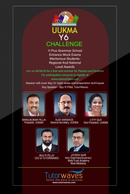 2021 ലെ ഗ്രാമര് സ്കൂള് പ്രവേശനത്തിന് തയ്യാറെടുക്കുന്ന വിദ്യാര്ത്ഥികള്ക്കായി യുക്മ ജൂണ് മാസത്തില് രണ്ട് സൗജന്യ ഓണ്ലൈന് പരിശീലന പരീക്ഷകള് (mock tests) സംഘടിപ്പിക്കുകയാണ്. ഇംഗ്ലീഷ്, കണക്ക് പരീക്ഷകള് ഉള്പ്പെടുന്ന രണ്ട് സെറ്റുകളായാണ് പരീക്ഷകള് വിഭാവനം ചെയ്തിരിക്കുന്നത്. ദേശീയ തലത്തിലും റീജിയണല് തലങ്ങളിലും വിജയികളാകുന്ന വിദ്യാര്ത്ഥികള്ക്ക് യുക്മ സര്ട്ടിഫിക്കറ്റുകളും പാരിതോഷികങ്ങളും നല്കുന്നതാണ്.
