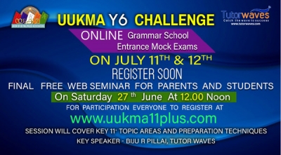 2021 ലെ ഗ്രാമര് സ്കൂള് പ്രവേശനത്തിന് തയ്യാറെടുക്കുന്ന വിദ്യാര്ത്ഥികള്ക്കായി യുക്മ ജൂലൈ മാസത്തില് രണ്ട് സൗജന്യ ഓണ്ലൈന് പരിശീലന പരീക്ഷകള് (mock tests) സംഘടിപ്പിക്കുകയാണ്. ഇംഗ്ലീഷ്, കണക്ക് പരീക്ഷകള് ഉള്പ്പെടുന്ന രണ്ട് സെറ്റുകളായാണ് പരീക്ഷകള് വിഭാവനം ചെയ്തിരിക്കുന്നത്. ജൂലൈ 11, 12 (ശനി, ഞായര്) തീയതികളില് നടക്കുന്ന പരീക്ഷകളില് വിജയികളാകുന്ന വിദ്യാര്ത്ഥികള്ക്ക് യുക്മ ദേശീയ തലത്തിലും റീജിയണല് തലങ്ങളിലും സര്ട്ടിഫിക്കറ്റുകളും പാരിതോഷികങ്ങളും നല്കുന്നതാണ്.