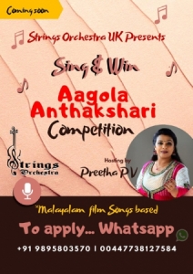 കോവിഡ് എന്ന മഹാമാരി മനുഷ്യ ജീവിതത്തില് വിതച്ച താളപ്പിഴകള് വാക്കുകള്ക്കും അപ്പുറമാണ് . കോവിഡിനു മുമ്പും പിമ്പും എന്ന ഒരു ലോകക്രമം ഉരുത്തിരിയുന്ന പ്രതിഭാസമാണ് ആഗോളതലത്തില് കണ്ടു വരുന്നത്. മനുഷ്യമനസ്സിലേക്കു കോവിഡ് കോരിയിട്ടത് പൊള്ളുന്ന നോവുകളുടെ അണയാത്ത കനല് കണങ്ങളാണ് , അതിലേക്ക് സ്വാന്ത്വനത്തിന്റെ കുളിര് മഴയായ് സംഗീതം പെയ്തിറങ്ങുന്ന സര്ഗ്ഗ സന്ധ്യകളുമായി ലണ്ടന് ആസ്ഥാനമായി പ്രവര്ത്തിക്കുന്ന ' സ്ട്രിങ്സ് ഓര്ക്കസ്ട്ര' നിങ്ങള്ക്കരികിലേക്ക് എത്തുന്നു . കോവിഡ് വിഷാദ ഭീതിയില് ജീവിത വഴികളില് ഒറ്റപെട്ടവരെ സംഗീതത്തിന്റെ മാന്ത്രിക ലോകത്തില് എത്തിക്കുന്ന നൂതന സംഗീത പരിപാടി എന്നതാണ് 'ആഗോള അന്താക്ഷരി' യുടെ കാലിക പ്രസക്തി . കരളേ നിന് കൈപിടിച്ചാല് ... ' എന്ന എക്കാലത്തെയും സൂപ്പര് ഹിറ്റ് ഗാനം , ദൈവദൂതന് എന്ന സിനിമ വേണ്ടി പാടിയ പി . വി . പ്രീത നയിച്ച ഗാനസന്ധ്യ പോയ കാഴ്ച്ചകളില് കണ്ടത് ആയിരക്കണക്കിന് സംഗീത പ്രേമികളാണ് . പിന്നീട് വന്ന ആഴ്ചയില് ഭാരത് സജികുമാര് നയിച്ച സന്ധ്യയും ശ്രദ്ധിക്കപ്പെട്ടു . ഇത്തവണ 'സ്ട്രിങ്സ് ഓര്ക്കസ്ട്ര 'വരുന്നത് ഏഷ്യാനെറ്റിലെ പ്രശസ്ത അവതാരകയും അറിയപ്പെടുന്ന ഗായികയുമായ പ്രീത നയിക്കുന്ന'ആഗോള അന്താക്ഷരി എന്ന ഇന്റര് ആക്റ്റീവ് പരിപാടിയുമായാണ് . മൂന്ന് ടീം അടങ്ങുന്ന ഒരു എപ്പിസോഡായാണ് ഓരോ ആഴ്ച്ചയും കടന്നു പോകുന്നത് . ഓരോ രാജ്യത്തെയും ഓരോ ടീം ആയി തരം തിരിക്കപ്പെടും . ഇതൊരു ആഗോള പരിപാടി ആയതിനാല് എല്ലാ രാജ്യത്ത് നിന്നുള്ളവര്ക്കും പങ്കെടുക്കാവുന്നതാണ് . അതാത് രാജ്യങ്ങളില് നിന്നുളളവര് പരസ്യത്തില് കൊടുത്തിരിക്കുന്ന whatsapp നമ്പറിലേക്ക് നിങ്ങള്ക്ക് ഇഷ്ടമുള്ള പാട്ടിന്റെ മൂന്നോ നാലോ വരികള് പാടി അയക്കുക. സംഗീതം സ്വാന്തനത്തിന്റെ അമൃത് പൊഴിക്കുന്നതിനോടൊപ്പം പുതിയ പുതിയ കലാകാരന്മാരെയും കലാകാരികളെയും കണ്ടെത്തുക കൂടി ചെയ്യുന്നു .