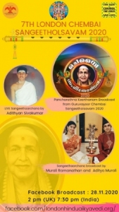 ഈ വര്ഷം ഗുരുവായൂര് ഏകാദശിയോട് അനുബന്ധിച്ചു നടത്തിയ ഗുരുവായൂര് ചെമ്പൈ സംഗീതോത്സവം 2020 ലെ പഞ്ചരത്നകീര്ത്തനാലാപനം സംപ്രേക്ഷണം ചെയ്ത് ലണ്ടന് ചെമ്പൈ സംഗീതോത്സവത്തിന് പരിസമാപ്തി കുറിക്കും. ഗുരുവായൂര് ഏകാദശി സംഗീതോത്സവത്തിനെ അനുസ്മരിച്ചു നടത്തുന്ന ലണ്ടന് ചെമ്പൈ സംഗീതോത്സവത്തില് ഗുരുവായൂര് ചെമ്പൈ സംഗീതോത്സവത്തിലെ ത്യാഗരാജ സ്വാമി വിരചിതമായ പഞ്ചരത്ന കീര്ത്തനം സംപ്രേക്ഷണം ചെയ്യുവാന് സാധിക്കുന്നതില് അതീവ സന്തോഷമുണ്ടെന്ന് സംഘാടകര് അറിയിച്ചു. സംപ്രേക്ഷണത്തിനു വേണ്ട സഹായങ്ങള് നല്കിയ രഞ്ജിത്ത് ഗുരുവായൂരിനും ബാല ഗുരുവായൂരിനും ഭാരവാഹികള് പ്രത്യേക നന്ദി അറിയിച്ചു. എല്ലാവര്ഷത്തെയും പോലെ രാജേഷ് രാമന്റെ നേതൃത്വത്തിലാണ് ലണ്ടന് ചെമ്പൈ സംഗീതോത്സവം അരങ്ങേറുന്നത്.