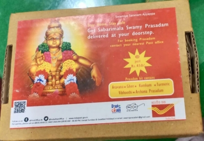 ശബരിമല സ്വാമി പ്രസാദം തപാല് മുഖേന ഭക്തര്ക്ക് വീടുകളില് എത്തിച്ച് നല്കുന്ന പദ്ധതി വന്വിജയത്തിലേക്ക്. കോവിഡ് 19ന്റെ പശ്ചാത്തലത്തില് ഭാരതീയ തപാല് വകുപ്പുമായി ചേര്ന്നാണ് തിരുവിതാംകൂര് ദേവസ്വം ബോര്ഡ് തപാല് വഴി പ്രസാദ വിതരണം ആരംഭിച്ചത്. ഈ മണ്ഡലകാലത്ത് ഇതുവരെ 1,10,88,900 രൂപായാണ് പ്രസാദ വിതരണത്തിലൂടെ ലഭിച്ചത്. ഇതില് 61,60,500 രൂപാ ദേവസ്വം ബോര്ഡിനും 49,28,400 രൂപാ തപാല് വകുപ്പിനും ലഭിച്ചു. 24,642 പ്രസാദ കിറ്റുകള് ഇത്തരത്തില് വിതരണം ചെയ്തു കഴിഞ്ഞു.