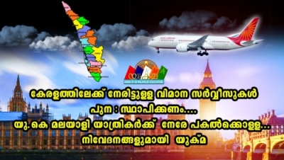 ലണ്ടനില് നിന്നും കൊച്ചിയിലേക്കുള്ള വിമാന സര്വീസുകള്ക്കൊപ്പം, തിരുവനന്തപുരത്തിനും കോഴിക്കോടിനും കൂടി സര്വീസുകള് ആരംഭിക്കുന്നകാര്യം സജീവമായി പരിഗണിക്കപ്പെടേണ്ടുന്ന ഒന്നാണ്. മെയ് 19 ന് ആയിരുന്നു വന്ദേഭാരത് മിഷന്റെ ആദ്യ വിമാനം ലണ്ടനില്നിന്നും കൊച്ചിയിലേക്ക് പറന്നത്. ഇതിനായി യുക്മ നടത്തിയ പരിശ്രമങ്ങളെപ്പറ്റി കേന്ദ്രമന്ത്രി വി മുരളീധരന് തന്റെ പത്രസമ്മേളനത്തില് അന്ന് പ്രത്യേകം പരാമര്ശിച്ചിരുന്നു.
