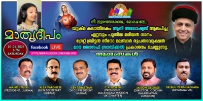 ലോകം മുഴുവന് പ്രത്യേകിച്ച് ഇന്ത്യയില് കോവിഡ് വ്യാപനത്തിന്റെ ദുരിതങ്ങളിലൂടെ ജനങ്ങള് ഇപ്പോള് കടന്നു പോകുമ്പോള് പരിശുദ്ധ ദൈവ മാതാവിന്റെ മാധ്യസ്ഥം യാചിച്ചു കൊണ്ടുള്ള 'മാതൃദീപം' ആല്ബത്തിലെ 'നീ തുണയേകണമേ.. ലോക മാതേ'.....എന്നു തുടങ്ങുന്ന ഭക്തിസാന്ദ്രമായ മരിയന് പ്രാര്ത്ഥനാഗാനം ഗ്രേറ്റ് ബ്രിട്ടന് സീറോ മലബാര് രൂപതാദ്ധ്യക്ഷന് മാര് ജോസഫ് സ്രാമ്പിക്കല് വെര്ച്യുല് പ്ലാറ്റ്ഫോമിലൂടെ ഇന്ന് പ്രകാശനം ചെയ്യും. യുക്മ ദേശീയ പ്രസിഡണ്ട് മനോജ് കുമാര് പിള്ള, യുക്മ ദേശീയ ജനറല് സെക്രട്ടറി അലക്സ് വര്ഗീസ്, യുക്മ ദേശീയ വൈസ് പ്രസിഡന്റ് അഡ്വ.എബി സെബാസ്റ്റ്യന്, മലയാളം മിഷന് യുകെ ചാപ്റ്റര് പ്രസിഡന്റും യുക്മ സാംസ്കാരിക വേദി രക്ഷാധികാരിയുമായ സി എ ജോസഫ്, കൊച്ചിന് കലാഭവന് ലണ്ടന് ഡയറക്ടര് ജെയ്സണ് ജോര്ജ്, യുക്മ സൗത്ത് വെസ്റ്റ് റീജിയണ് പ്രസിഡന്റും സേവനം യുകെ മുന് ചെയര്മാനുമായ ഡോ. ബിജു പെരിങ്ങത്തറ എന്നിവര് ആശംസകള് നേരും. ഗായിക ആനി അലോഷ്യസിന്റെ പിതാവും ആല്ബത്തിന്റെ ഗാനരചയിതാവുമായ അലോഷ്യസ് ഗബ്രിയേല് കൃതജ്ഞത പ്രകാശിപ്പിക്കും . യുകെയിലെ അറിയപ്പെടുന്ന കലാകാരി ദീപാ നായര് അവതാരകയായി എത്തി ചടങ്ങിന് മികവേകും.