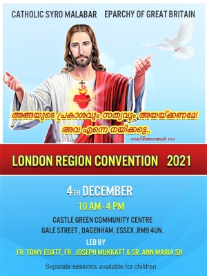 സീറോമലബാര് ഗ്രേറ്റ് ബ്രിട്ടന് രൂപതയില് സുവിശേഷവല്ക്കരണത്തിന്റെ ഭാഗമായി സംഘടിപ്പിക്കുന്ന ലണ്ടന് മേഖലാ ബൈബിള് കണ്വെന്ഷന് ഡിസംബര് നാലാം തീയതി ശനിയാഴ്ച നടത്തപ്പെടുന്നതാണ്. മഹാമാരിയുടെയും, ദേശീയ ലോക്കഡൗണ് നടപടികളുടെയും ഭാഗമായി നിര്ത്തിവെച്ച തിരുവചന ശുശ്രുഷകള്ക്ക് ഇതോടെ പുനരാരംഭമാവും.