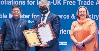 കേന്ദ്ര വാണിജ്യ മന്ത്രി പീയൂഷ് ഗോയല് യുകെയുടെ രാജ്യാന്തര വാണിജ്യ സെക്രട്ടറി ആന് മരിയ ട്രെവ്ലിനൊപ്പം ചര്ച്ച ഉദ്ഘാടനം ചെയ്തു. ഇരുരാജ്യങ്ങള്ക്കും പ്രയോജനകരമായ കരാര് (എഫ്ടിഎ) 2023 ആദ്യം ഒപ്പിടാന് ലക്ഷ്യമിട്ട് മധ്യസ്ഥര് കൂടിയാലോചനകള് ആരംഭിച്ചു.