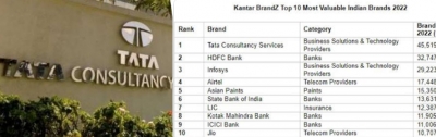 2022 ലെ ഏറ്റവും മികച്ച ഇന്ത്യന് 75 ബ്രാന്ഡുകളുടെ പട്ടികയിലാണ് ടാറ്റാ കണ്സള്ട്ടന്സി സര്വീസസ്(ടി.സി.എസ്) ഒന്നാമതെത്തിയിരിക്കുന്നത്. ദി കാന്ഡാര് ബ്രാന്ഡ്സ് ആണ് പട്ടിക തയ്യാറാക്കിയിരിക്കുന്നത്. എച്ച്.ഡി.എഫ്.സി ബാങ്ക്, ഇന്ഫോസിസ്, എയര്ടെല്, ഏഷ്യന് പെയിന്റ്സ്, സ്റ്റേറ്റ് ബാങ്ക് ഓഫ് ഇന്ത്യ, എല്.ഐ.സി, കൊടക് മഹീന്ദ്ര ബാങ്ക്, ഐ.സി.ഐ.സി.ഐ ബാങ്ക് എന്നീ ബ്രാന്ഡുകളാണ് തൊട്ട് പിറകിലായി ഉള്ളത്. ടെലികോം രംഗത്തെ ശക്തമായ സാന്നിധ്യമായ ജിയോ പത്താമതാണുള്ളത്.