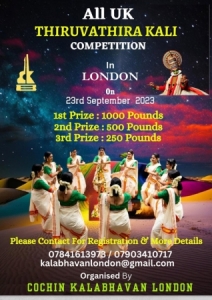 ഓണത്തോടനുബന്ധിച്ചു കലാഭവന് ലണ്ടന് ഓള് യുകെ തിരുവാതിരകളി മത്സരം സംഘടിപ്പിക്കുന്നു. ഈ വര്ഷത്തെ ഓണാഘോഷങ്ങളോട് അനുബന്ധിച്ചു കൊച്ചിന് കലാഭവന് ലണ്ടന്റെ ആഭിമുഖ്യത്തില് ഓള് യുകെ തിരുവാതിര കളി മത്സരം സംഘടിപ്പിക്കുന്നു.