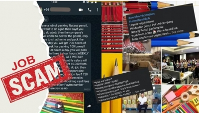 പ്രമുഖ പെന്സില് കമ്പനികളില് പാക്കിംഗ് ജോലി, വീട്ടിലിരുന്നു ലക്ഷങ്ങള് നേടാമെന്ന് വാഗ്ദാനവുമായി സമൂഹമാധ്യമങ്ങളില് വരുന്ന പരസ്യം തട്ടിപ്പാണ്. ഇത്തരം ജോലി വാഗ്ദാനം ചെയ്തുള്ള പരസ്യങ്ങളില് വിളിക്കേണ്ട മൊബൈല് നമ്പര് വരെ നല്കിയാണ് തട്ടിപ്പ്. പല പോസ്റ്റുകളിലും പല നമ്പറുകള് ആണ് കോണ്ടാക്റ്റ് നമ്പറായി കൊടുത്തിരിക്കുന്നത്. ഉയര്ന്ന ശമ്പളം പ്രതീക്ഷിച്ച് ജോലിക്ക് വേണ്ടി വാട്സാപ് നമ്പറില് ബന്ധപ്പെടുന്നവരോട് ഗൂഗിള് പേ വഴിയോ ഫോണ്പേ വഴിയോ രജിസ്ട്രേഷന് ഫീസ് ആവശ്യപ്പെടും. അടുത്ത പടി ഫോട്ടോ വാങ്ങി കമ്പനിയുടെതെന്ന രീതിയില് വ്യാജ തിരിച്ചറിയല് കാര്ഡ് അയച്ചുകൊടുക്കും. മേല്വിലാസം വെരിഫൈ ചെയ്യാനും കൊറിയര് ചാര്ജ്ജായി പണം ആവശ്യപ്പെട്ടാണ് തട്ടിപ്പ് നടത്തുന്നത്. നടരാജ് പെന്സിലിന്റെ പേരില് ജോലി വാഗ്ദാനം ചെയ്യുന്ന പോസ്റ്റുകള് തട്ടിപ്പാണ് എന്ന് കമ്പനി തന്നെ വ്യക്തമാക്കിയിട്ടുണ്ട്.