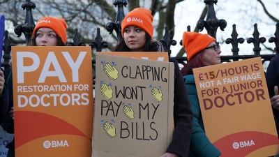 35% ശമ്പളവര്ദ്ധന ആവശ്യപ്പെട്ടാണ് ബിഎംഎ സമരം. മന്ത്രിമാര് ഈ ആവശ്യം തള്ളിയതോടെ ഇവരുടെ പണിമുടക്ക് 39 ദിവസമായി നീണ്ടു. തര്ക്കത്തിന്റെ അനന്തരഫലം അനുഭവിക്കുന്നത് രോഗികളാണെന്ന് എന്എച്ച്എസ് കോണ്ഫെഡറേഷന് ചൂണ്ടിക്കാണിച്ചു. എന്നാല് ഗവണ്മെന്റുമായി ശമ്പളതര്ക്കത്തില് കരാറില് എത്താത്ത പക്ഷം സമരങ്ങള് തുടരുമെന്ന് തന്നെയാണ് യൂണിയന്റെ ഭീഷണി. ഈ സാമ്പത്തിക വര്ഷം 9% ശമ്പള വര്ദ്ധനവാണ് ജൂനിയര് ഡോക്ടര്മാര്ക്ക് ലഭിച്ചത്. ഇതിന് ശേഷമുള്ള ചര്ച്ചകളില് 3% അധികം ഓഫര് ചെയ്തെങ്കിലും വിഷയത്തില് കരാറിലെത്താന് സാധിച്ചില്ല. 15 വര്ഷമായി പണപ്പെരുപ്പത്തില് താഴെ ലഭിക്കുന്ന വര്ദ്ധനകളുടെ കുറവ് പരിഹരിച്ചുള്ള വര്ദ്ധന വേണമെന്നാണ് ബിഎംഎ ആവശ്യപ്പെടുന്നത്.