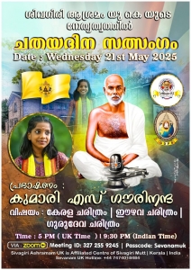 ശ്രീനാരായണ ഗുരുദേവന്റെ സന്ദേശങ്ങള് യുവതലമുറയിലേക്കും പകര്ന്നു നല്കുകയാണ് സേവനം യുകെ യുടെ ഈ മാസത്തെ ചതയദിന സത്സംഗത്തില്, ആകര്ഷണമായിത്തീരുന്നത് എസ്. ഗൗരി നന്ദയുടെ പ്രഭാഷണമാണ്. ആറാം ക്ലാസുകാരിയായ ഒരു ശ്രീനാരായണ ധര്മ്മപ്രചാരിക. എസ്എന്ഡിപി യോഗം മലയാറ്റൂര് ഈസ്റ്റ് ശാഖ അംഗങ്ങളായ ദുര്ഗ്ഗാദാസിന്റെയും ജിഷയുടെയും ഇളയമകളായ ഗൗരി നന്ദ, കുട്ടിക്കാലം മുതല് തന്നെ ഗുരുദേവന്റെ ആശയങ്ങള് സ്വീകരിച്ചുവളര്ന്നു. മൂന്നര വയു മുതല് കുടുംബ യോഗങ്ങളിലും സത്സംഗങ്ങളിലും മാതാപിതാക്കളോടൊപ്പം പങ്കെടുത്ത അനുഭവങ്ങളാണ് ഗുരുവിനെ കുറിച്ചുള്ള ബോധം ഈ ചെറു മനസ്സില് നിറഞ്ഞത്. ഇപ്പോള് ആ ആത്മബോധം വാക്കുകളായി വിരിയുമ്പോള്, ഗുരു ധര്മ്മ പ്രചാരണം പുതിയ ദിശയിലേക്ക് വഴികാട്ടുക എന്നതാണ് സേവനം യുകെയുടെ ലക്ഷ്യം. കുട്ടികളുടെ വായില് നിന്നു ഗുരുദേവന്റെ സന്ദേശം മുഴങ്ങുമ്പോള്, ആ ശബ്ദം ഒരു തലമുറയുടെ ഉണര്വാകുന്നു. പുതിയതലമുറയുടെ ധാര്മിക വീക്ഷണവും സമൂഹസേവനത്തിലെ പങ്കാളിത്തവും ഉയര്ത്തിപ്പിടിക്കുന്ന ഈ സത്സംഗം ലോകത്തിന് മുമ്പില് ഗുരുദേവ സന്ദേശത്തിന്റെ അനശ്വരത വീണ്ടും തെളിയിക്കുന്നു.