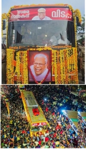 മുന് മുഖ്യമന്ത്രിയും സിപിഎം നേതാവുമായ വിഎസ് അച്യുതാനന്ദന്റെ ഭൌതികദേഹവും വഹിച്ചുകൊണ്ടുള്ള വിലാപയാത്രയില്, പ്രിയ നേതാവിനെ അവസാനമായി ഒരു നോക്ക് കാണാന് രാത്രി വൈകിയും വന് ജനാവലി ഒഴുകിയെത്തി. തലസഥാനത്തിന്റെ അന്ത്യാഭിവാദ്യം എറ്റുവാങ്ങി ചൊവ്വാഴ്ച ഉച്ചയ്ക്ക് രണ്ടരയോടെയാണ് സെക്രട്ടേറിയേറ്റിലെ ദര്ബാര് ഹാളിലെ പൊതു ദര്ശനത്തിന് ശേഷം വിഎസിന്റെ മൃതദേഹവും വഹിച്ചുള്ള വിലാപയാത്ര ആരംഭിച്ചത്. നേതാക്കളും പ്രവര്ത്തകരും ഉള്പ്പെടെ നിരവധി പേരാണ് വിലാപയാത്രയെ അനുഗമിക്കുന്നത്.