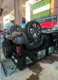വാഹനം പുറത്തിറക്കുന്നതിന് മുമ്പ് പൂജയും ചടങ്ങുകളും നടത്താന് അവര് തീരുമാനിച്ചു. ഥാര് റോഡിലിറക്കുന്നതിന് മുന്പായി ചക്രത്തിനടിയില് നാരങ്ങ വെച്ച് വാഹനം സ്റ്റാര്ട്ട് ചെയ്തു. സാവധാനം വാഹനം മുന്നോട്ടെടുക്കാന് ശ്രമിക്കുന്നതിനിടെ അബദ്ധത്തില് ആക്സിലറേറ്ററില് ചവിട്ടുകയായിരുന്നു. ഇതോടെ വാഹനം മുന്നോട്ടു കുതിച്ചു. ഷോറൂമിന്റെ ഒന്നാം നിലയിലെ ചില്ലുഭിത്തി തകര്ത്ത് വാഹനം താഴേക്ക് പതിക്കുകയും ചെയ്തു. |
