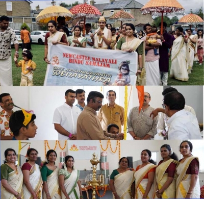 ന്യൂ കാസില് ഹിന്ദു സമാജത്തിന്റെ ആഭിമുഖ്യത്തില് ഈ വര്ഷത്തെ ശ്രീകൃഷ്ണ ജന്മാഷ്ടമി, ശ്രീകൃഷ്ണ ജയന്തി ദിനത്തില് തന്നെ അതിവിപുലമായി ഭക്തിസാന്ദ്രമായി ആഘോഷിച്ചു. ന്യൂകാസിലെ ക്രാംലിങ്ടണില് സേജ്ഹില് കമ്മ്യൂണിറ്റി ഹാളില് രാവിലെ 11 മണിക്ക് പരിപാടികള് ആരംഭിച്ചു. നന്ദകുമാര് പതാക ഉയര്ത്തുകയും, തുടര്ന്ന് നാട്ടില് നിന്നും എത്തിച്ചേര്ന്നിട്ടുള്ള മാതാപിതാക്കളായ രാമചന്ദ്രകുറുപ്പ്, രാജലക്ഷ്മി, രാമകൃഷ്ണന്, ജലജ എന്നിവരോടൊപ്പം നന്ദകുമാര്, സോമന് നാരായണന്, ശ്രീകൃഷ്ണ വേഷത്തില് പകര്ന്നാട്ടം നടത്തിയ ഗൗരിനാഥ് എന്നിവര് ചേര്ന്ന് ഭദ്രദീപം കൊളുത്തി ജന്മാഷ്ടമി പരിപാടികള്ക്ക് തുടക്കം കുറിച്ചു.