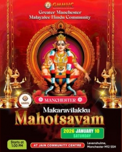 ഗ്രേറ്റര് മാഞ്ചസ്റ്റര് മലയാളി ഹിന്ദു കമ്മ്യൂണിറ്റി സംഘടിപ്പിക്കുന്ന മാഞ്ചസ്റ്റര് മകരവിളക്ക് മഹോത്സവം ജനുവരി പത്തിന് ശനിയാഴ്ച നടക്കും. ഉച്ചയ്ക്ക് രണ്ടു മണി മുകല് രാത്രി ഒന്പതു മണി വരെ ജൈന കമ്മ്യൂണിറ്റി സെന്ററിലാണ് മഹോത്സവം നടക്കുക.