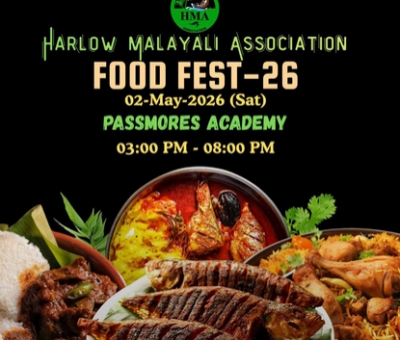 രുചി വൈവിധ്യങ്ങളുടെ മേള പെരുമയുമായി ഹാര്ലോ മലയാളി അസോസിയേഷന്റെ ഫുഡ് ഫെസ്റ്റിവല് മേയ് രണ്ടിന്; 12 ഓളം ഫുഡ് സ്റ്റാളുകളില് നിറയുക രുചി കൂട്ടുകള്. മലയാളിയുടെ നോസ്റ്റാള്ജിയയുടെ രുചിമുകുളങ്ങളെ തൊട്ടുണര്ത്തുന്ന വൈവിധ്യമാര്ന്ന രസകൂട്ടുകളുമായി ഹാര്ലോയുടെ നവ ഷെഫുമാര് ഒന്നിക്കുന്ന ഫുഡ് ഫെസ്റ്റിവല് മെയ് രണ്ടിന് നടക്കും. 12 ഓളം ഫുഡ് സ്റ്റാളുകള് ആണ് അണി നിരക്കുന്നത് |
