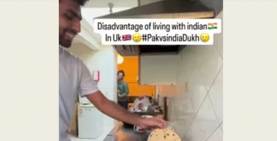 യുകെയില് റൂമേറ്റ്സായ ഇന്ത്യന് ഗായകന് യൂസഫ് സുലൈമാനിയും പാക്കിസ്ഥാന് പൗരനായ എയര്ക്രാഫ്റ്റ് എന്ജിനീയര് ട്രെയിനി അലി റാസയുമാണ് വീഡിയോയിലെ താരങ്ങള്. അടുക്കളയില് അലി റാസ റൊട്ടി ഉണ്ടാക്കുന്നതിനിടെ യൂസഫ് പാക്കിസ്ഥാന്റെ ജഴ്സിയോട് സാമ്യമുള്ള ടി-ഷര്ട്ട് ധരിച്ച് എത്തി, വിക്കറ്റ് നഷ്ടപ്പെട്ടതിനെക്കുറിച്ച് തമാശ പറയുന്നതാണ് ദൃശ്യങ്ങള്.